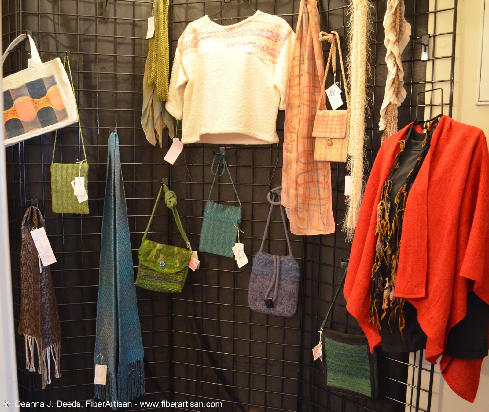 Four rooms were filled with art to wear, jewelry, scarves, gifts, home textiles, decor and other goodies. The "bag wall" was in the hallway leading to the other rooms.